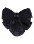 Résille avec filet à mailles fines et double nœud. Le noeud supérieur est en dentelle et le noeud inférieur en satin. Le filet à cheveux peut être fixé à l'aide d'un clip.