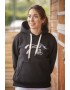 Sweat-shirt noir à capuche avec une poche centrale zippée et un marquage du logo Pénélope sur le devant dans une matière "croco rainbow"