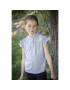 Polo "Julieta" confectionné dans un tissu gris légèrement irisé. Il est doté d'un petit col officier fermé par deux boutons. Il a également deux jolies manches courtes "tulipe", un galon plat glitter sur chaque épaule et un logo Pénélope en strass sur le cœur.